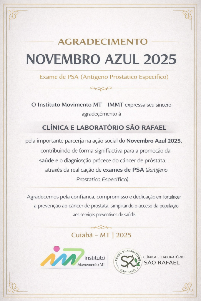 Uma parceria entre, o Instituto Movimento MT e o Laboratório São Rafael possibilitou, a realização
